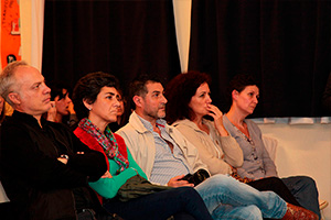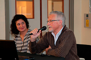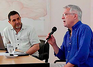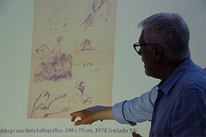 Panel con Verónica Molas, en el marco de la Retrospectiva Dibujos 1984-2014 del artista, Escuela Superior de Bellas Artes Dr. José Figueroa Alcorta, Facultad de Arte y Diseño, Universidad Provincial de Córdoba, 15 de mayo de 2014